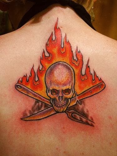 A notable creature that is strong connection with flame is the Phoenix, which can regenerate after dying in flames. So it is a common tattoo theme, too.